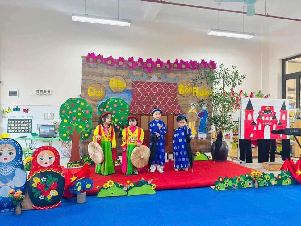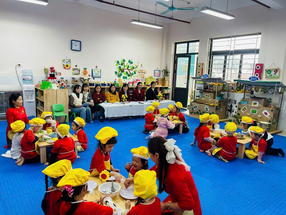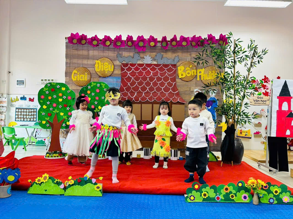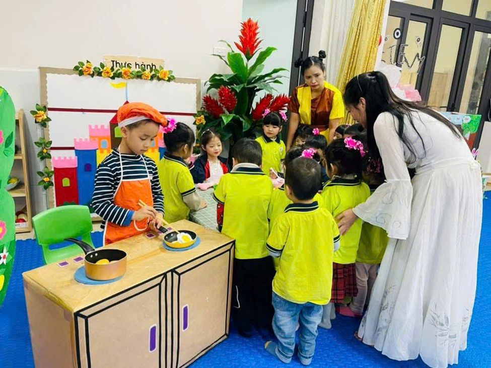 Bên cạnh đó, nhà trường còn tổ chức các chuyên đề gắn với hoạt động trải nghiệm, giúp trẻ được học thông qua chơi, khám phá và thực hành. Thông qua các hoạt động này, trẻ được phát triển toàn diện về thể chất, nhận thức, ngôn ngữ, tình cảm – kỹ năng xã hội và thẩm mỹ, tạo nền tảng vững chắc cho các bậc học tiếp theo.