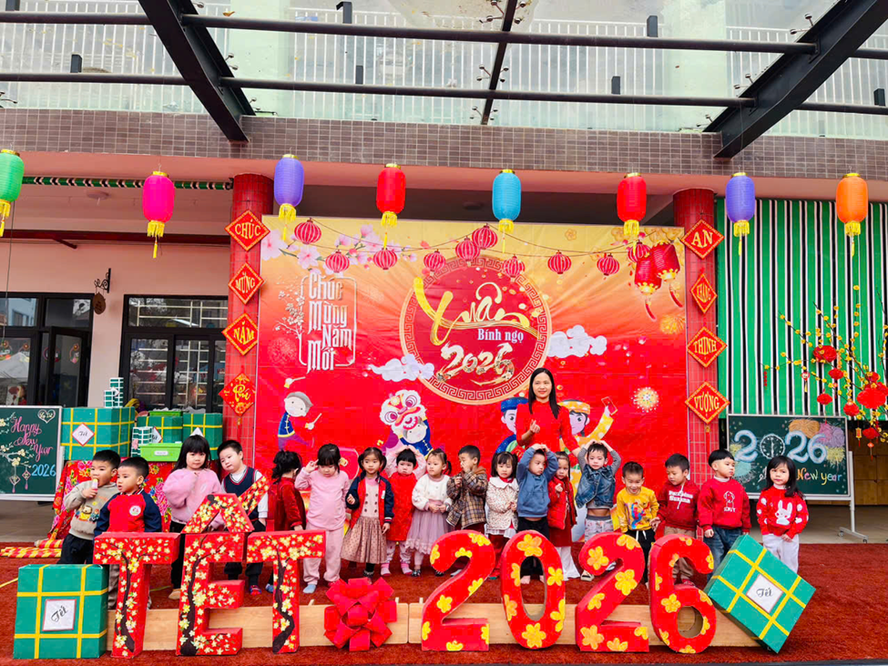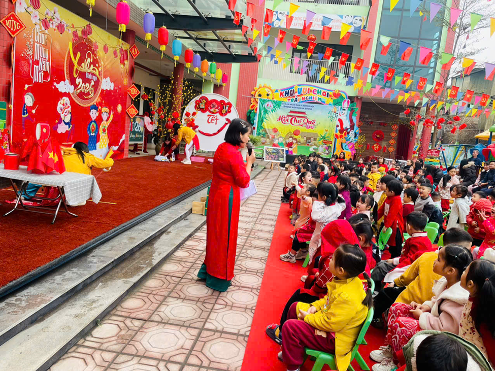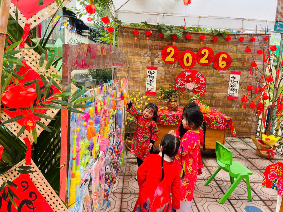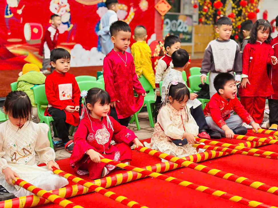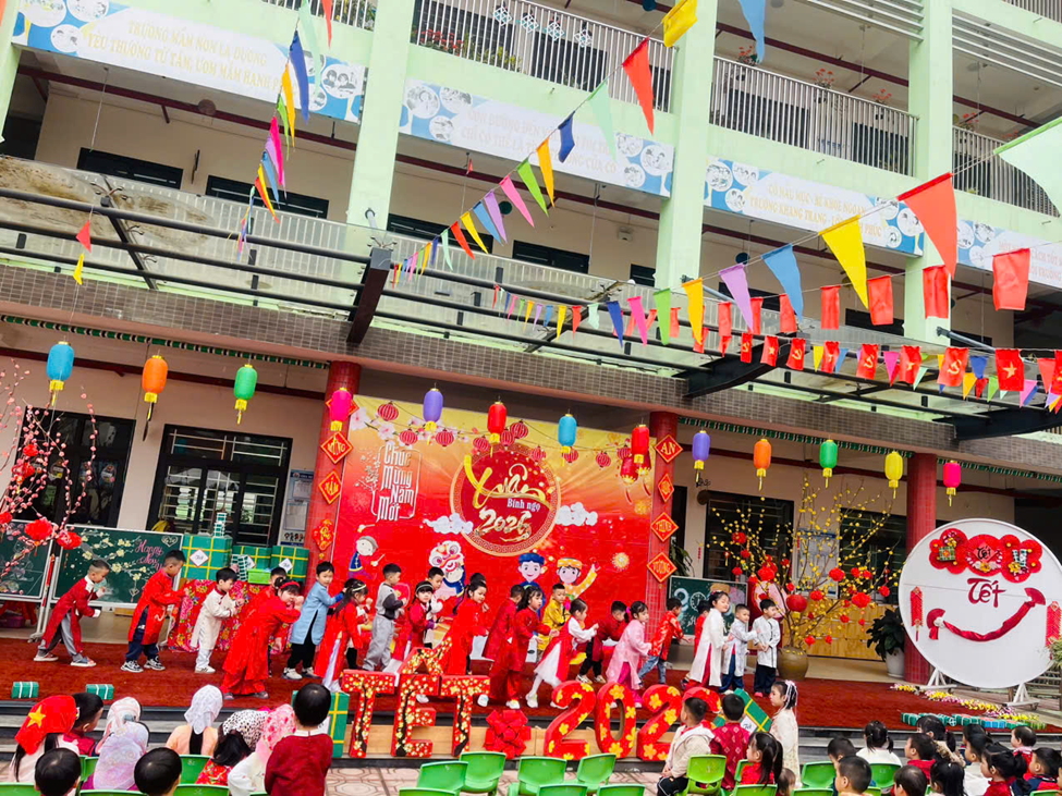 Mở đầu chương trình là phần văn nghệ đặc sắc của các bé khối 4–5 tuổi. Với sự hồn nhiên, tự tin cùng những tiết mục nhảy, múa mang đậm sắc xuân, không khí ngày hội trở nên rộn ràng, tươi vui. Những tà áo dài nhiều màu sắc, giai điệu mùa xuân quen thuộc đã để lại ấn tượng sâu sắc trong lòng các bậc phụ huynh và khách mời. Bên cạnh đó nhà trường đã dành những phần quà cho các trẻ có hoàn cảnh khó khăn, thể hiện sự quan tâm, sẻ chia tới các bé. Những phần quà tuy nhỏ nhưng chứa đựng tình yêu thương, động viên kịp thời, giúp các con thêm vui vẻ, tự tin đón Tết.