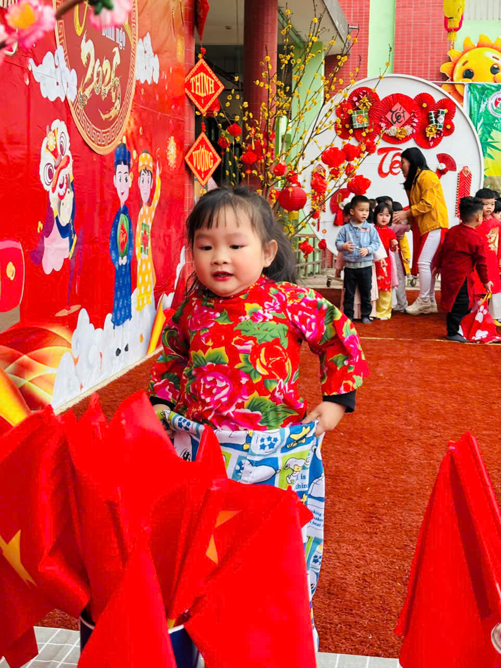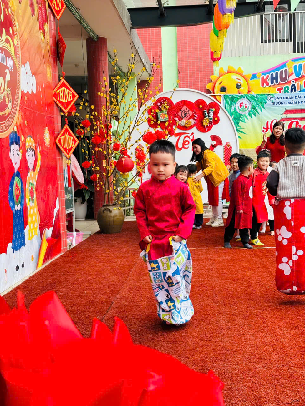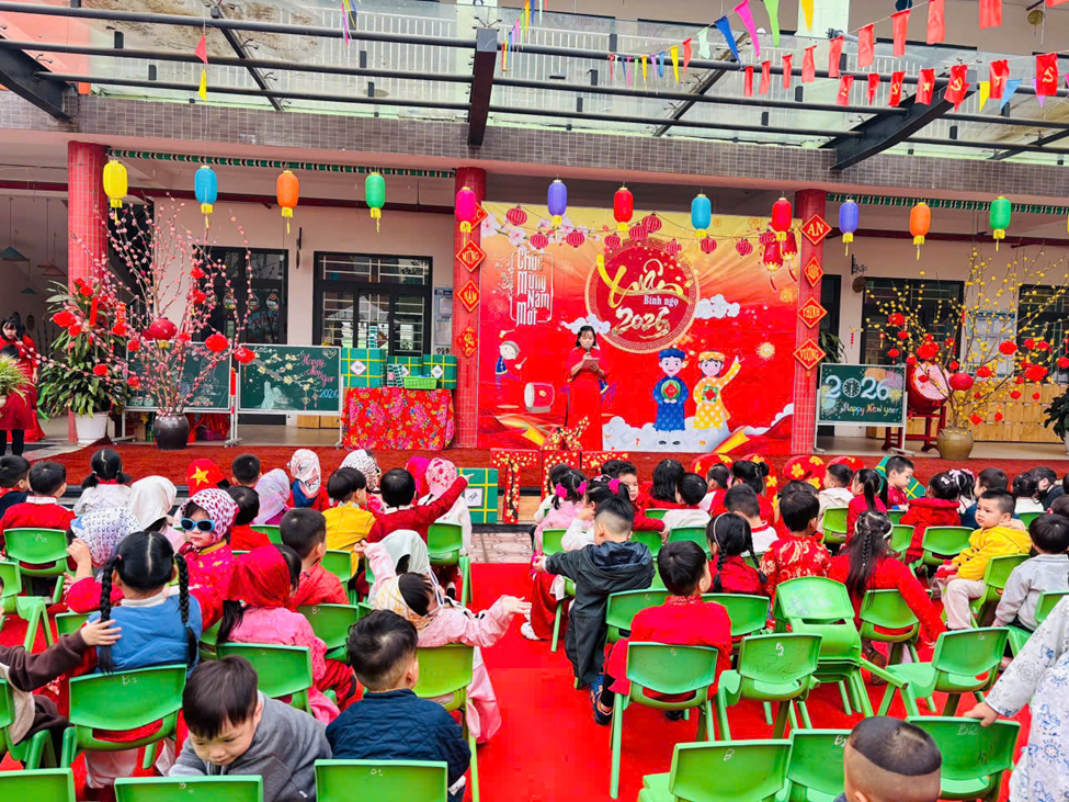 Mở đầu chương trình là phần văn nghệ đặc sắc của các bé khối 4–5 tuổi. Với sự hồn nhiên, tự tin cùng những tiết mục nhảy, múa mang đậm sắc xuân, không khí ngày hội trở nên rộn ràng, tươi vui. Những tà áo dài nhiều màu sắc, giai điệu mùa xuân quen thuộc đã để lại ấn tượng sâu sắc trong lòng các bậc phụ huynh và khách mời. Bên cạnh đó nhà trường đã dành những phần quà cho các trẻ có hoàn cảnh khó khăn, thể hiện sự quan tâm, sẻ chia tới các bé. Những phần quà tuy nhỏ nhưng chứa đựng tình yêu thương, động viên kịp thời, giúp các con thêm vui vẻ, tự tin đón Tết.