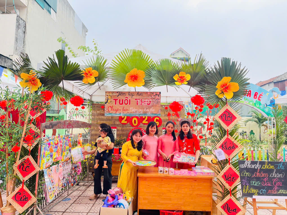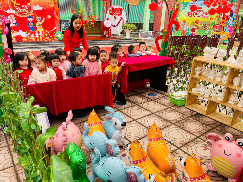 Khi tham gia “Hội chợ xuân” trẻ được sống trong không gian đậm đà bản sắc Tết xưa sắc đỏ của câu đối, hình ảnh bánh chưng xanh, mâm ngũ quả, hoa đào, hoa mai rực rỡ. Qua đó, trẻ bước đầu hiểu được ý nghĩa của Tết cổ truyền, là dịp sum vầy, đoàn viên, là thời khắc thiêng liêng để mỗi người hướng về gia đình, quê hương và truyền thống dân tộc. Trẻ được trải nghiệm các hoạt động như gói bánh chưng, trải nghiêm các gian hàng, giúp trẻ biết trân trọng phong tục, tập quán ngày Tết. Hình thành tình yêu quê hương, đất nước từ những điều gần gũi. Nuôi dưỡng niềm tự hào về bản sắc văn hóa Việt Nam ngay từ lứa tuổi mầm non.